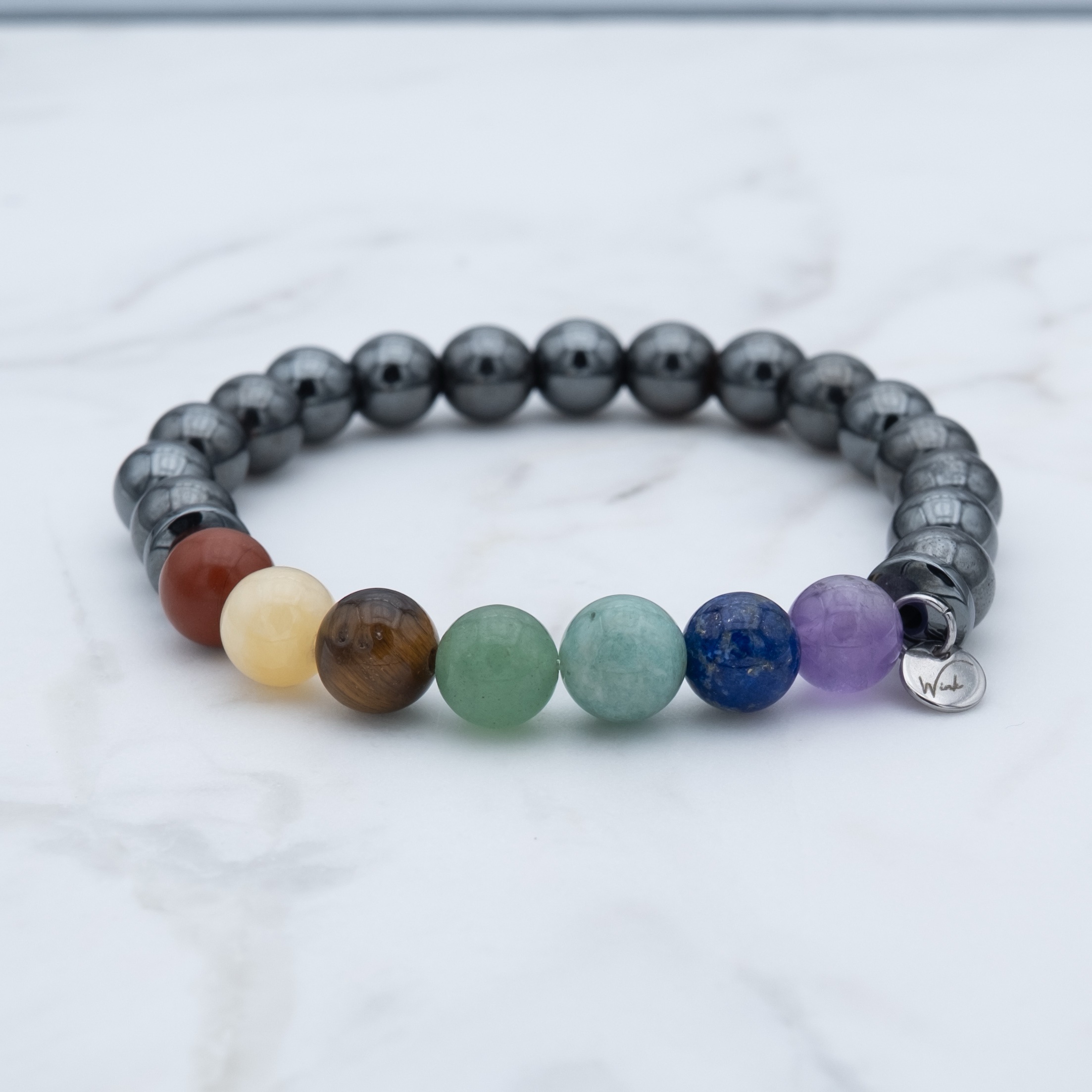 Edelstenen armband 7 chakra’s en Hematiet 8mm